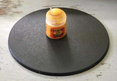(1) C'est partie pour une application de 5 fines couches d'Averland Sunset bien diluées par de l'eau et du medium en glacis pour monter le jaune sur le ventre et les membranes des ailes. Le jaune étant difficile sur une sous couche noire, j'ai préféré cette technique afin d'obtenir un beau jaune bien fin et bien solide.